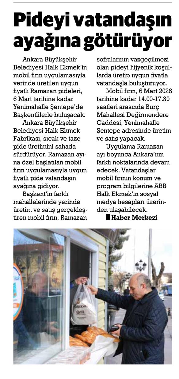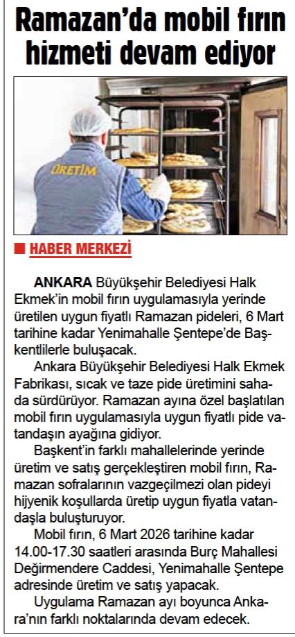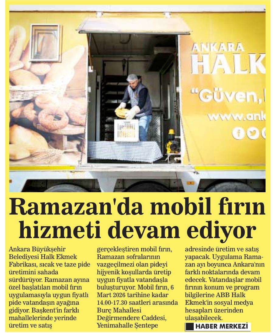 Basında Halk Ekmek➖ Mobil Fırında Ramazan pidesi üretimi➖Polatlı'da yerli besi uygun fiyatlı et satışı haberleri